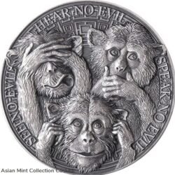 2022 – Three Wise Monkeys Life Quotes 1oz Coin 5 Cedis Republic of Ghana