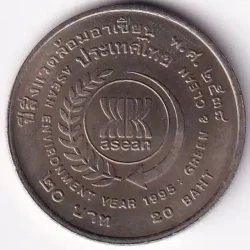 A 6000 baht gold coin (weighing 1 baht) commemorating the Golden Jubilee of King Rama IX in 1996.
