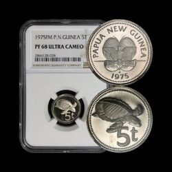 1975 – PAPUA NEW GUINEA. 5 Toea – NGC PF68 – Pig-Nosed Turtle 🐢