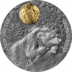 2023 – Brown Bear Wildlife in the Moonlight 2 oz Antique finish Silver Coin Niue