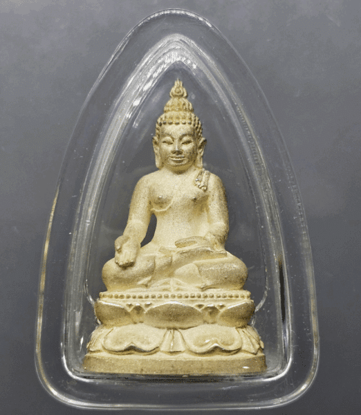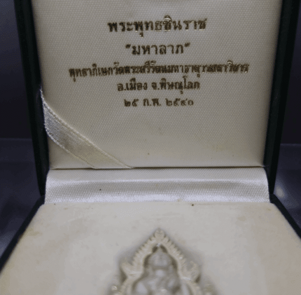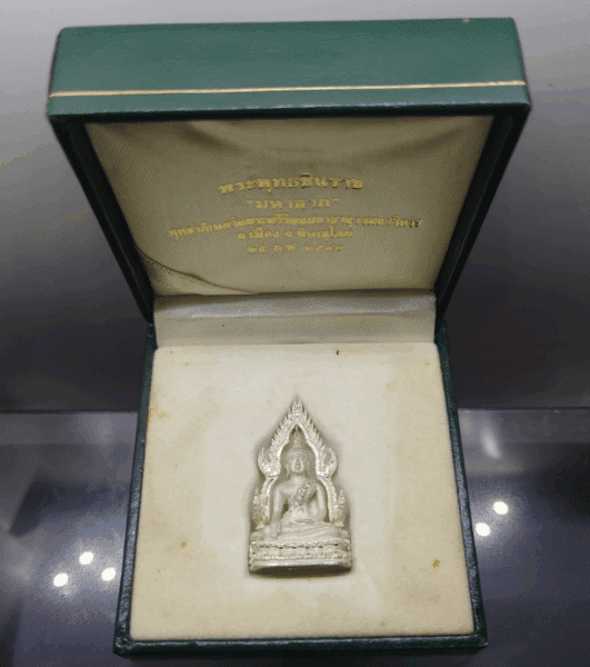 Phra Buddha Chinnarat, Mahalap model, silver, consecrated at Wat Phra Sri Rattana Mahathat Woramahawihan, Phitsanulok, 1997, with original box.