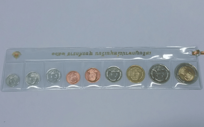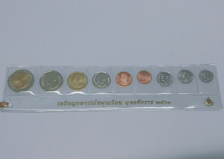 Bookmark set featuring King Rama X coins (9 coins total), packaged in 2018.