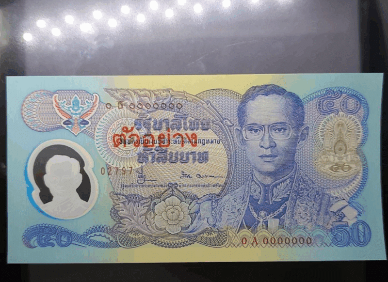 Sample banknote, 50 baht commemorative banknote, King Rama IX’s 50th anniversary of accession to the throne, Golden Jubilee, 1996