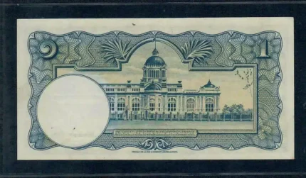 1952 – Thai Banknote, 1 Baht (2nd Series Type 9), Young King Rama IX, Nam Phan Watermark, unused