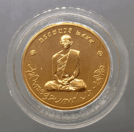 Commemorative coin on the occasion of the 90th birthday of Her Majesty Queen Srinagarindra, the Queen Mother. Obverse – The center of the coin features the image of Her Majesty Queen Srinagarindra, facing left, wearing full regalia, the sash and necklace of the Most Illustrious Order of the Chakri Dynasty, decorated with the Ratana Phorn Medal of King Rama VIII and the Ratana Phorn Medal of King Rama IX. Below is the inscription “Her Majesty Queen Srinagarindra”, surrounded by a necklace around the rim of the coin.