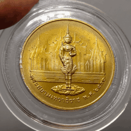 3rd Cycle Commemorative Coin of King Rama IX, Year 1963, Alpaca, gold plated, code “SW” on left and right, with tinkling bell, unused, original envelope