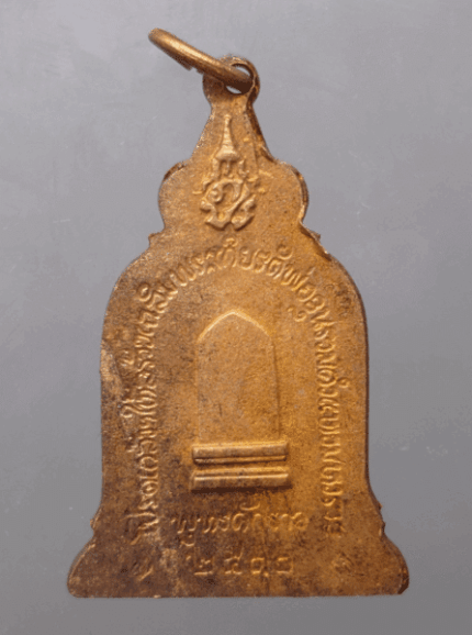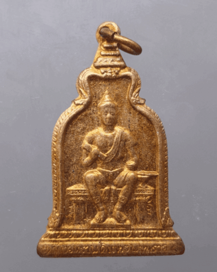 A set of amulets of Luang Pu Thuat, made from herbal powder, lotus petal shape – jackfruit petal shape, back with B.P.R. and Phra Phuttha Singhatham Mongkhon, framed in gold, consecrated at the Ubosot of Wat Phra Sri Rattana Satsadaram in 2004, with original box.