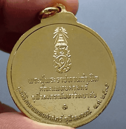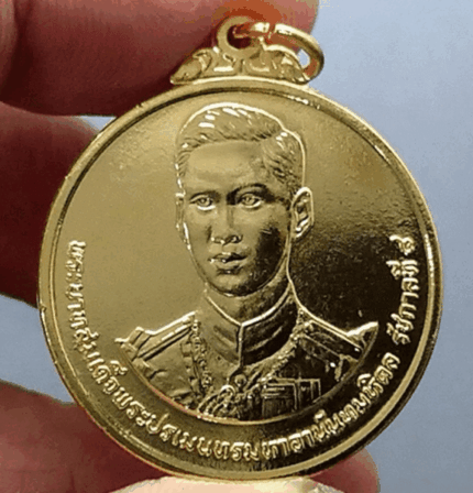 King Rama VIII commemorative coin, gold-plated, bestowed by His Majesty, Faculty of Medicine, Chulalongkorn University, 1992, original envelope