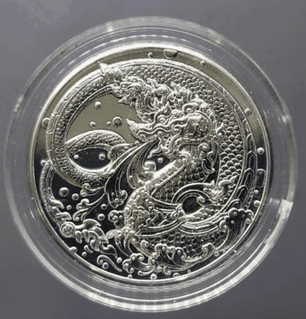 Zodiac coin, copper plated with silver, Year of the Dragon, 2024, created by the Treasury Department, uncirculated.