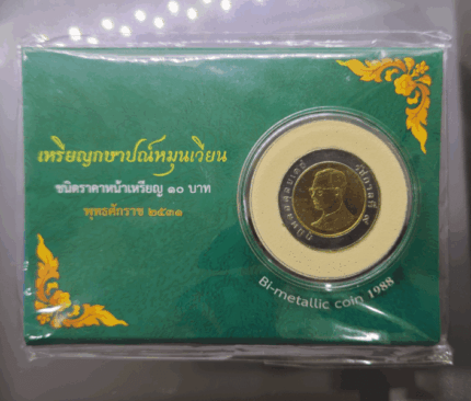 10 baht coin, circulated in 1988, green panel, from the Treasury Department, unused, UNC (2nd serial number)