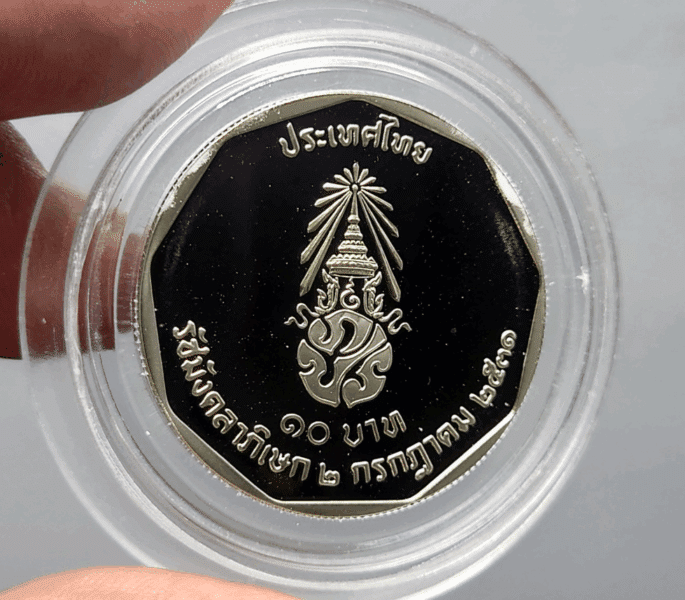 10 baht nickel polished coin, commemorating the King’s 50th anniversary, unused condition (unc), beautiful, worth collecting,