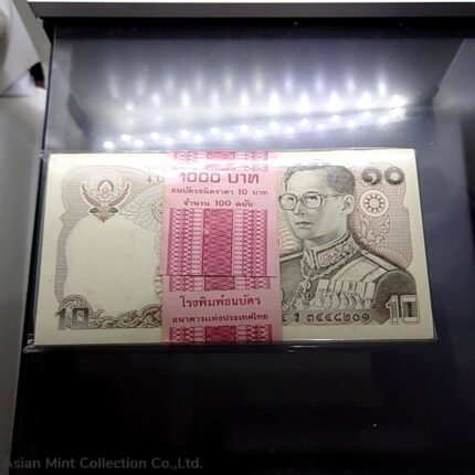 1980 – Thai Banknote, 10 Baht (12th Series), the King Rama IX (Bundle) 100 Consecutive, unused