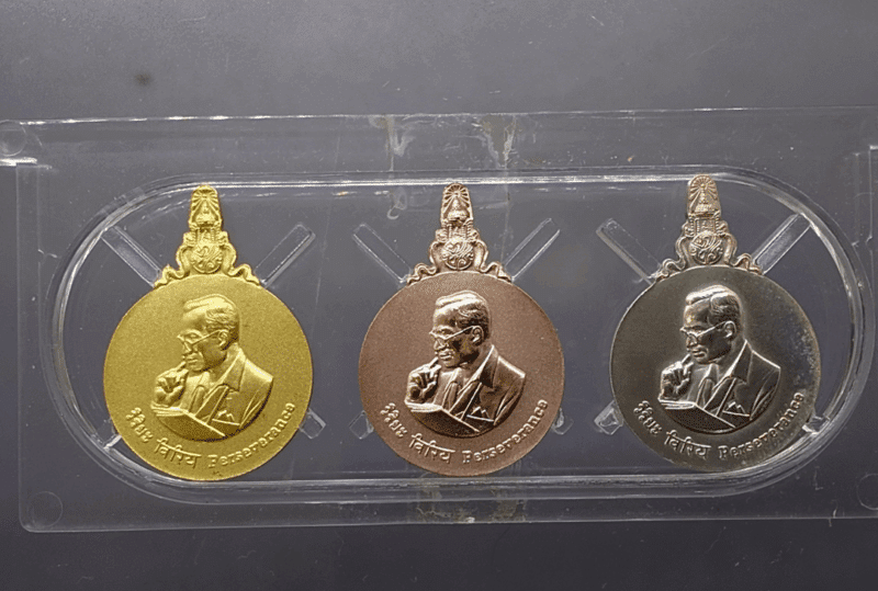 Mahajanaka coin, complete set, gold, small print (gold, silver, brass) with book, year 1999