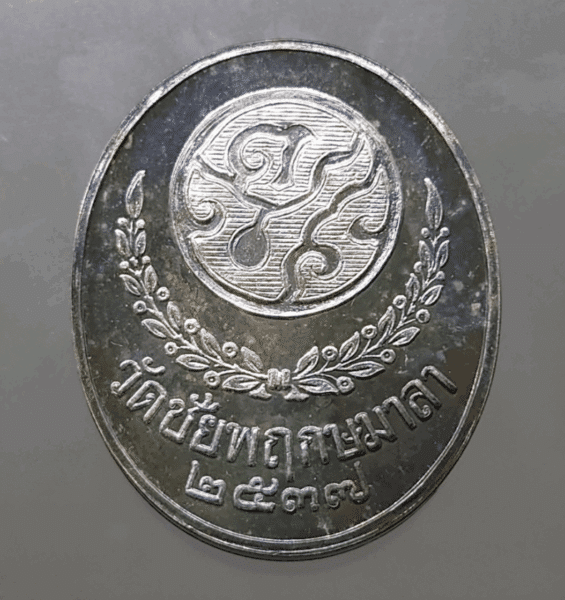 King Rama V commemorative coin, back side Chulachomklao Royal Military Academy, Wat Chai Phruek Mala, silver, large print, with original box, year 1994