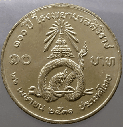 10 baht coin, 100 years of Siriraj Hospital, year 1988, uncirculated
