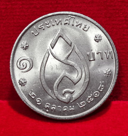 1 baht coin commemorating the 75th birthday of Her Majesty the Queen Mother, 1975, uncirculated