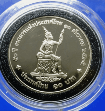10 baht coin, polished nickel, commemorative of the 50th anniversary of the Bank of Thailand, 1992