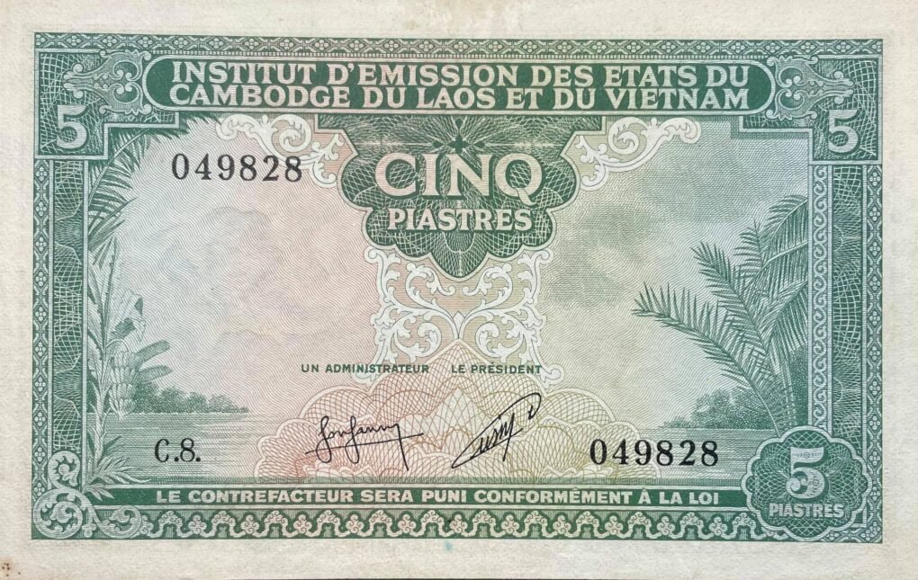 Nice bright note, French Indochina 1953 issue.
