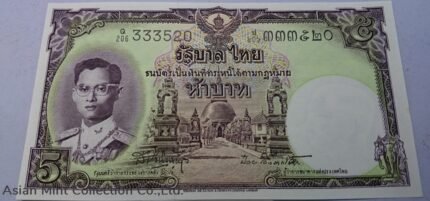 1957 – Thai Banknote, 5 Baht (5th Series Type 9), the King Rama IX, unused