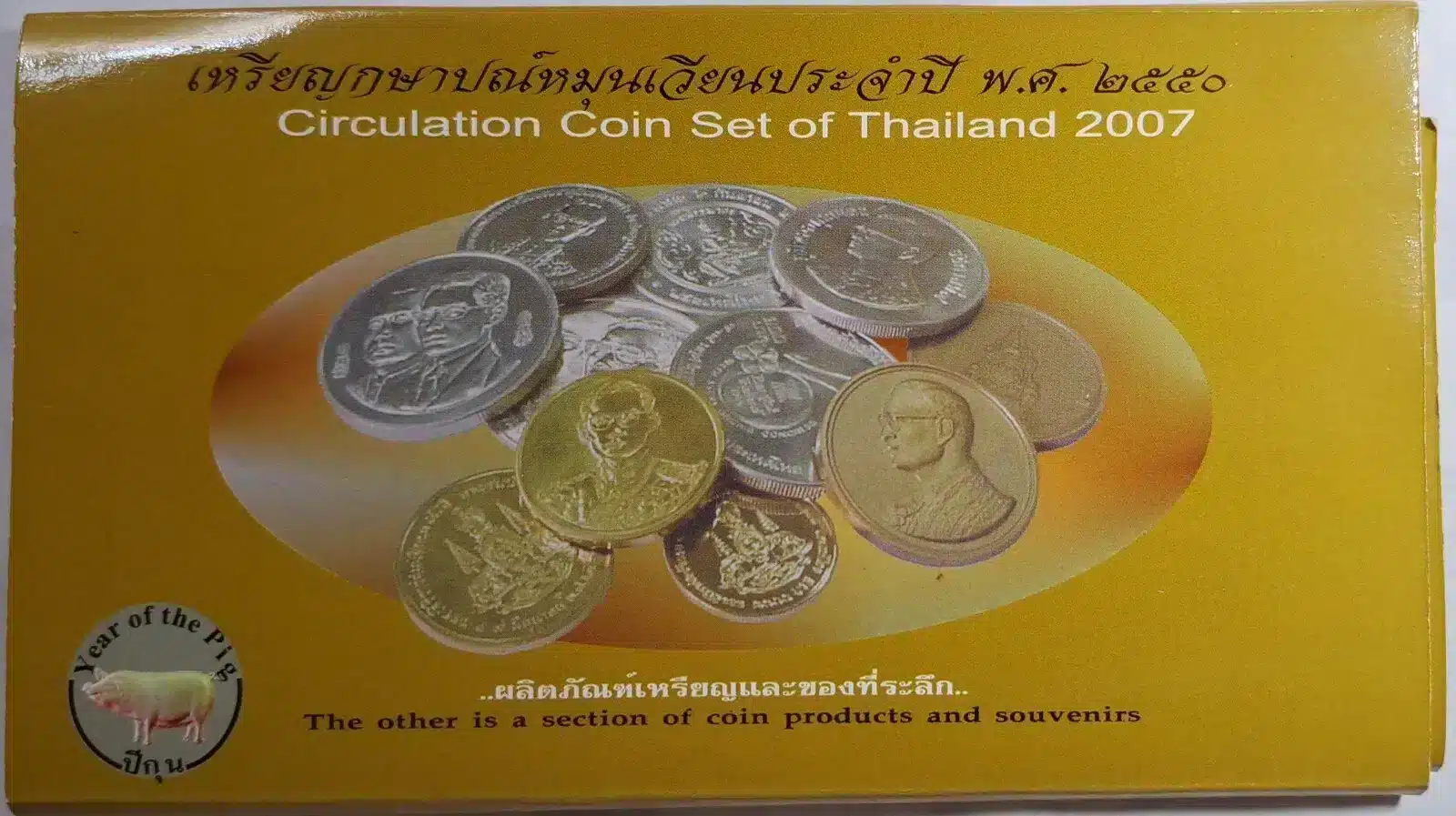 Circulating coins, The King’s Rama 9 complete set, year 2007, unused (6 coins), packed in panel and box.