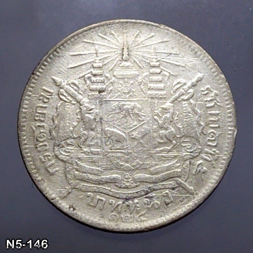 Thailand Coat of arms, 1 Baht Silver Coin- King Rama V – R.S. 124, Used