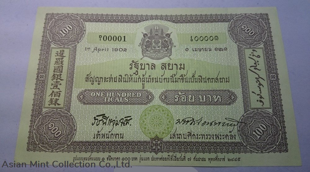 2002 – Commemorative Banknote 100 Baht of the 100th Anniversary of Thai banknotes, unc