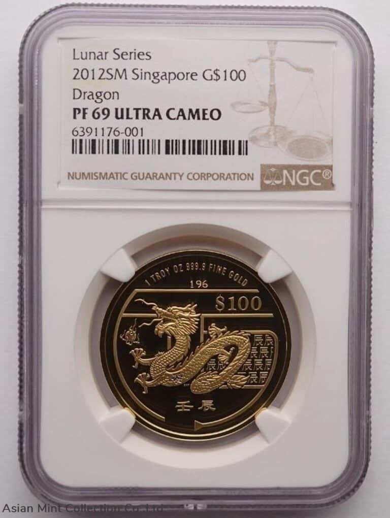 2012 – SINGAPORE MINT DRAGON PROOF GOLD COINS – NGC PF69