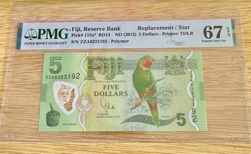2013 – FIJI 5 DOLLARS-PICK 115a **PMG 67 EPQ SUPERB GEM UNC**