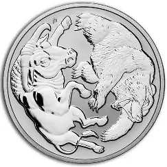 2020 Australia 1 Dollar Bull Bear 1 oz 9999 Silver St / BU