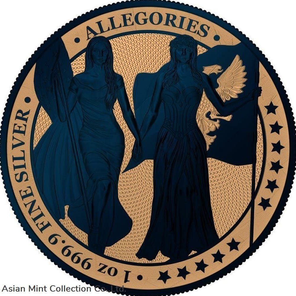 2019 5 Mark Columbia & Germania-Gilded & Dark Blue 1 Oz Silver Coin