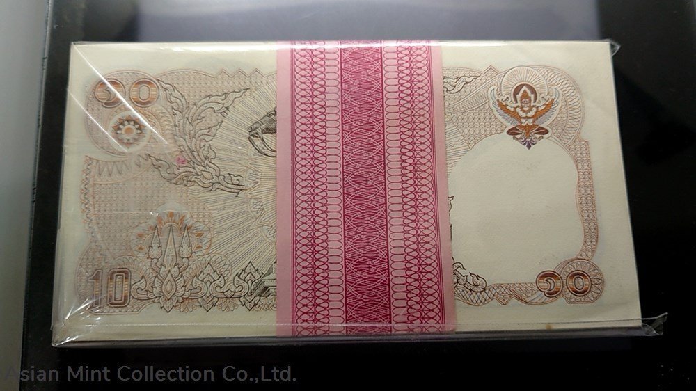 1980 – Thai Banknote, 10 Baht (12th Series), the King Rama IX (Bundle) 100 Consecutive, unused