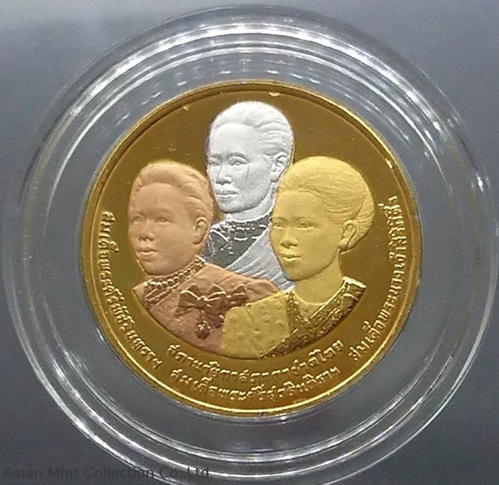 1993 – Gold plated coin, sandblasted polished, 10 Baht coin, 100th Anniversary of the Thai Red Cross