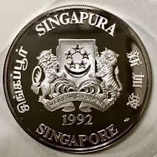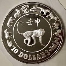 1992 Singapore Year of the Monkey SGD 10 Dollar UNC Zodiac Coin