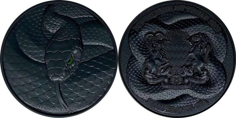 2023 – 2 Oz Silver Coin Chad 10000 Francs CFA Black Mamba High Relief Coin