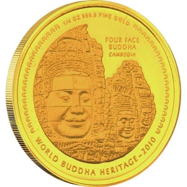 2010 Bhutan NU1000 World Buddha Heritage Series “Four Face Buddha of Cambodia” -1/4oz Gold Proof