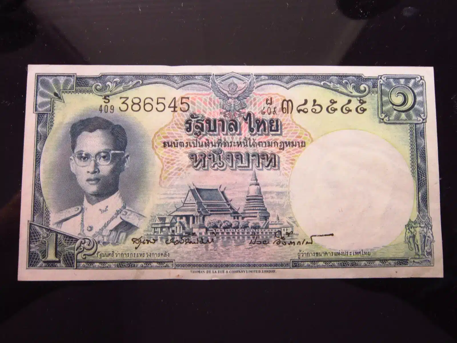 1954 – Thai Banknote, 1 Baht (5th Series Type 9), the King Rama 9 (Thomas Type), unused