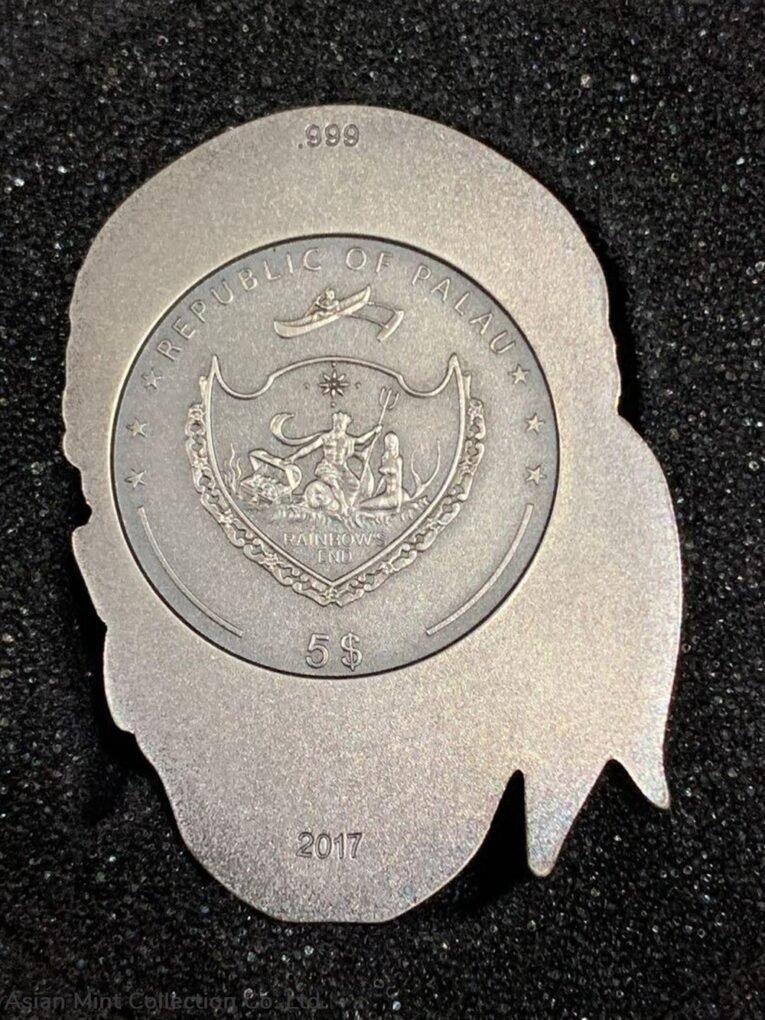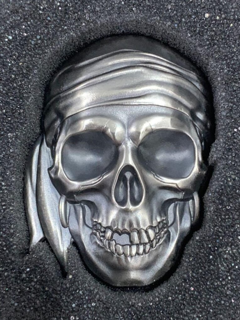 2017 1 oz Palau Pirate Skull High Relief Antiqued Silver Coin