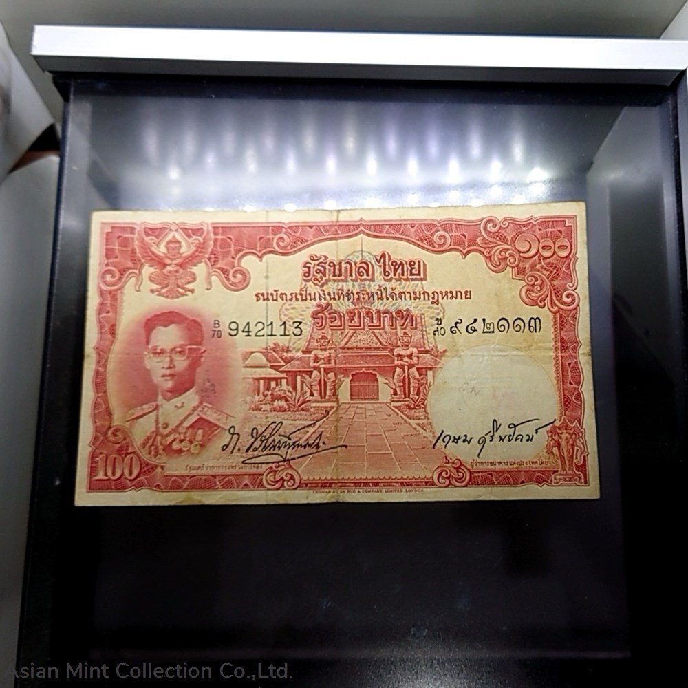 1955 – Thai Banknote, 100 Baht (3rd Series Type 9), the King Rama IX, Nam Phan watermark, used