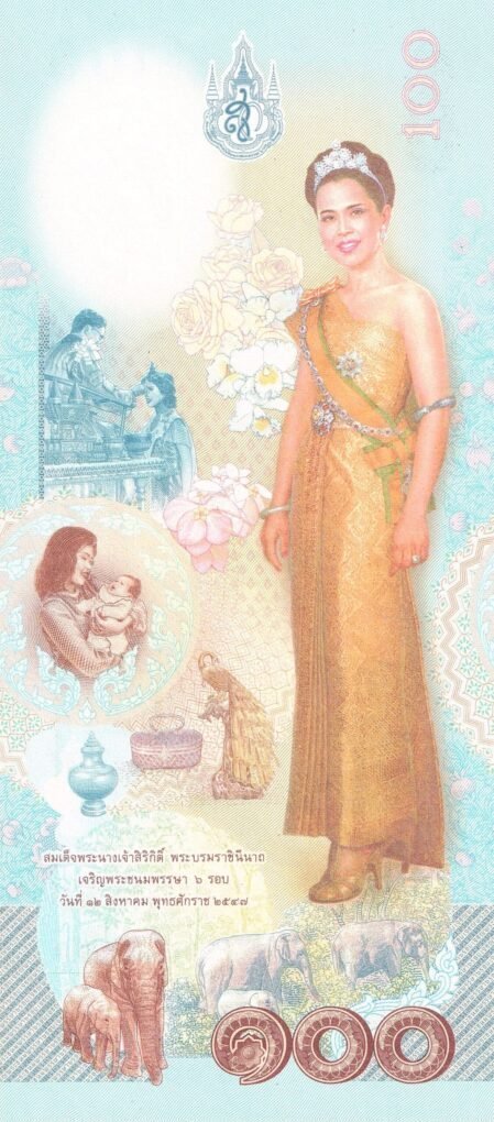 2004 – Commemorative Banknotes 100 Baht, the Queen’s 72th Birthday with folder, New cloth bag, unc