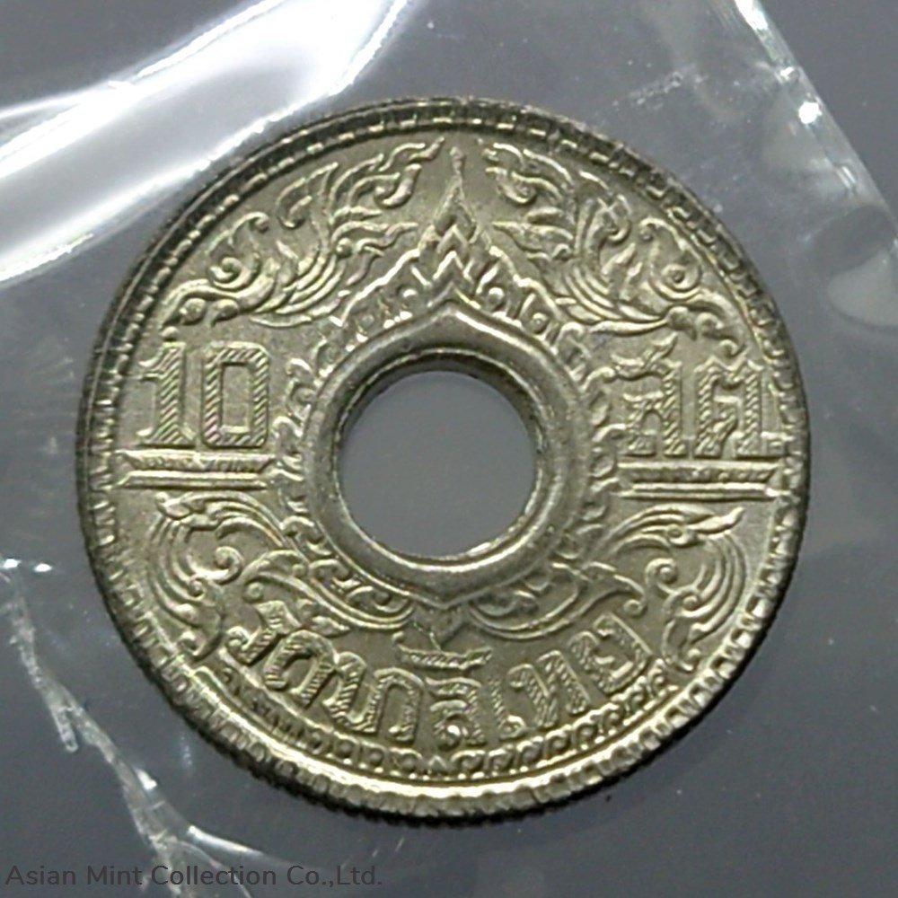 1945 – Thailand 1945 – 10 Satang Tin Coin – Bua Kanok Khaeng Singh Pattern, unused.