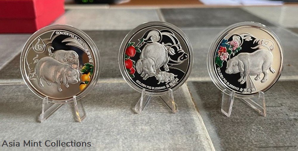 2019 NIUE Island-New Zealand Mint Minted Golden Pig Blessing $2 Colorized Silver Proof 3-Coin Set