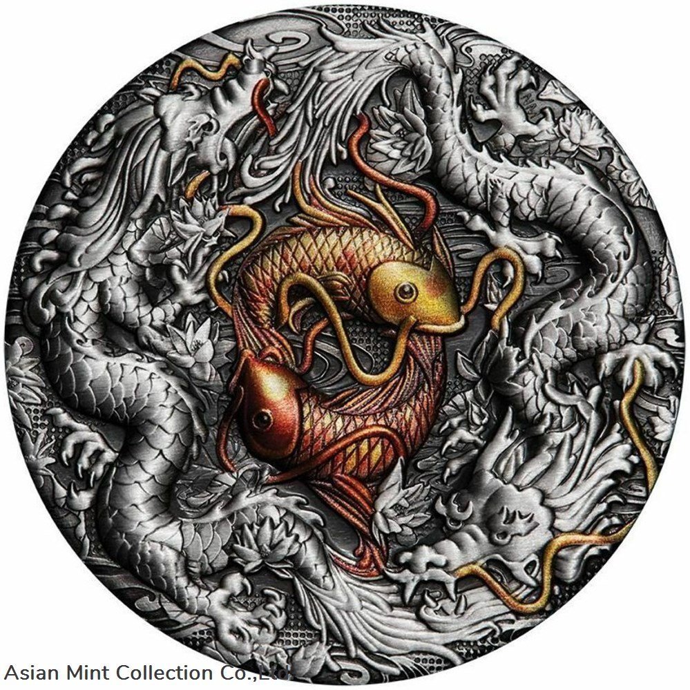 2021 Tuvalu $2 Double Dragon Yin Yang Koi 2 oz .9999 Silver Coin