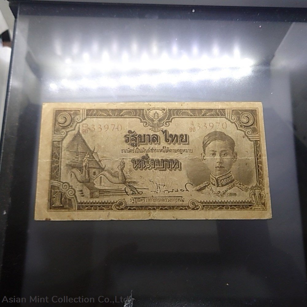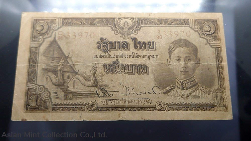 1944 – Thai Banknote, 1 Baht (3rd Series Type 5), the King Rama VIII (Wat Phumin), used