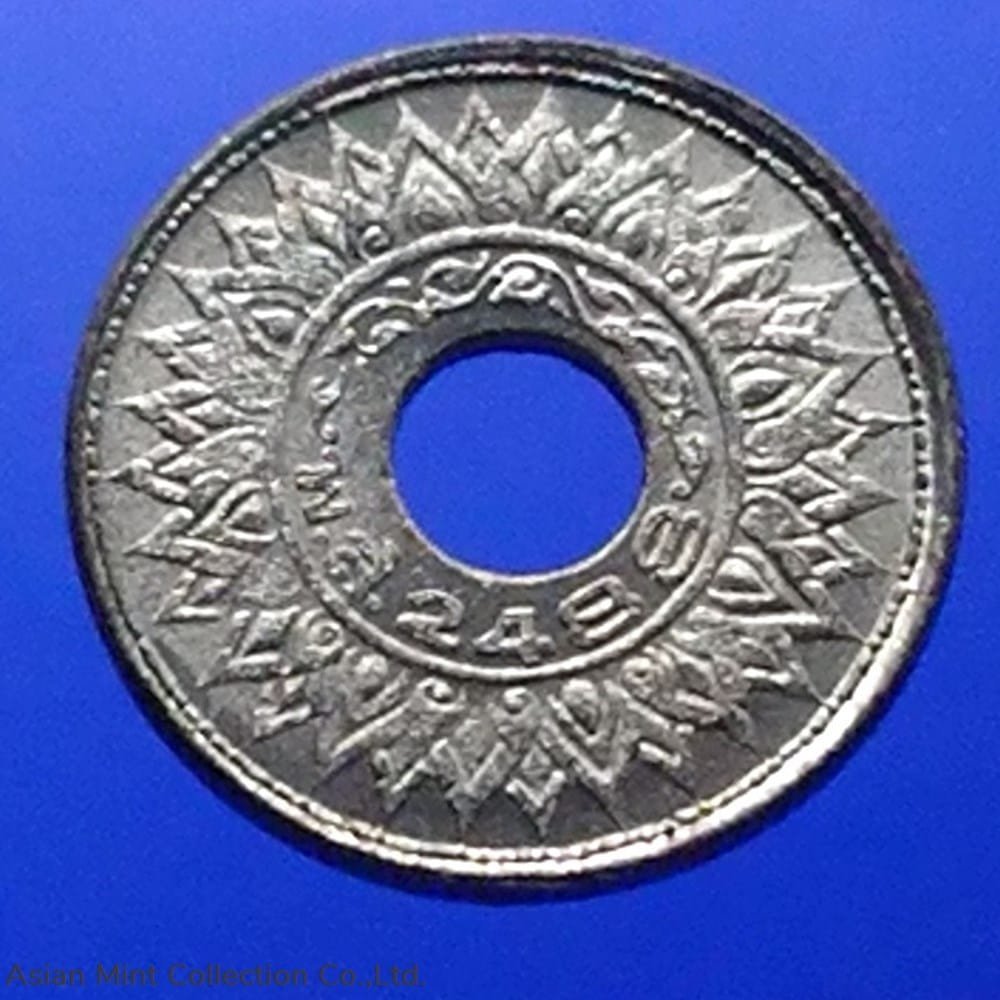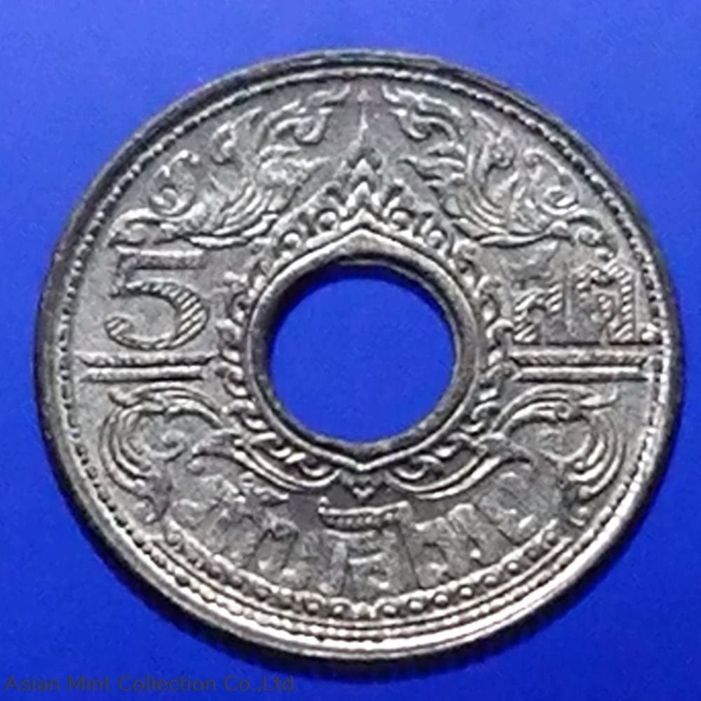 Thailand 1945 – 5 Satang Tin Coin – Bua Kanok Khaeng Singh pattern, unused