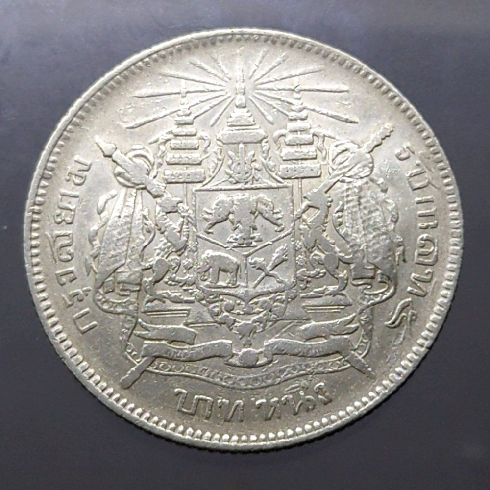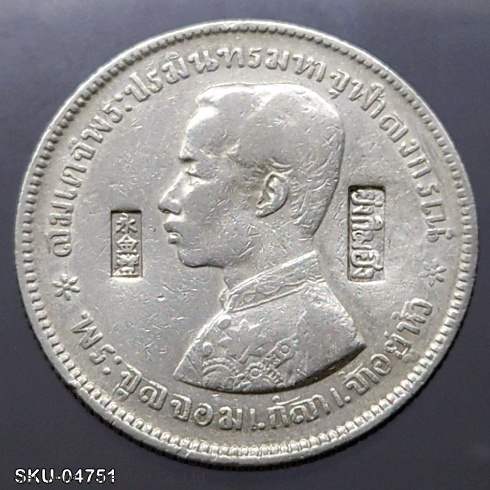 Thailand Coat of arms, 1 Baht Silver Coin-Trademark stamped coin, Yong Kim Hong, Rama V