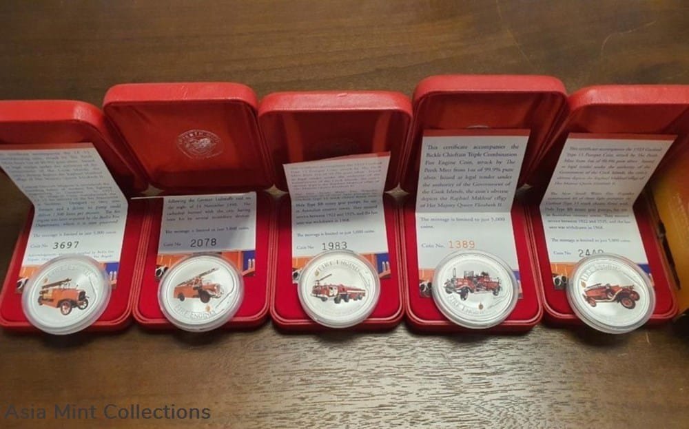 2006 Fire Engines of the World $1 Fine Silver 1 oz Coin x 5 coin sets