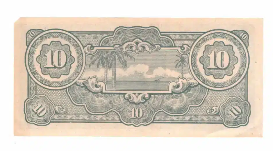1942 – 10 Dollars Banknote (Banana Money) from World War II, Used.