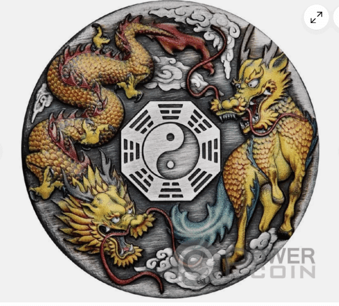 DRAGON AND QILIN 2 Oz Silver Coin 2$ Tuvalu 2022