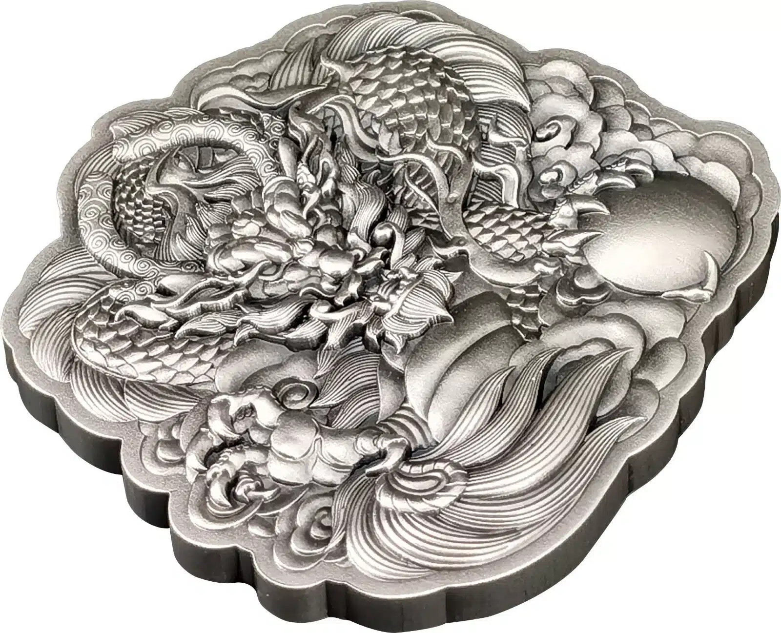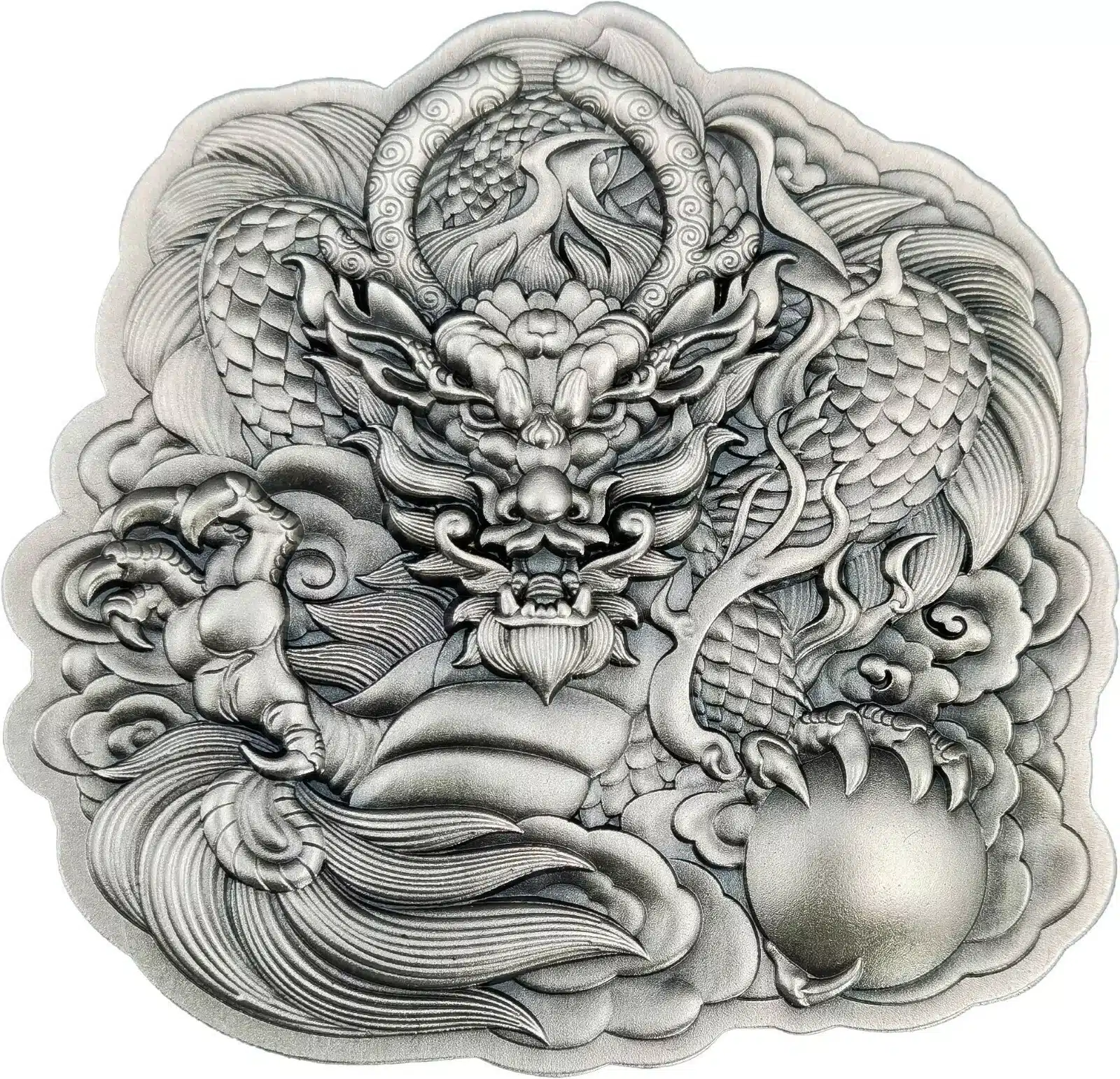 2022 – DRAGON SHAPED 2 Oz Silver Coin 1$ Fiji