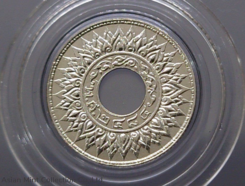1941 – 10 satang hole coin, silver, Kanok Khaeng Singh pattern, unused